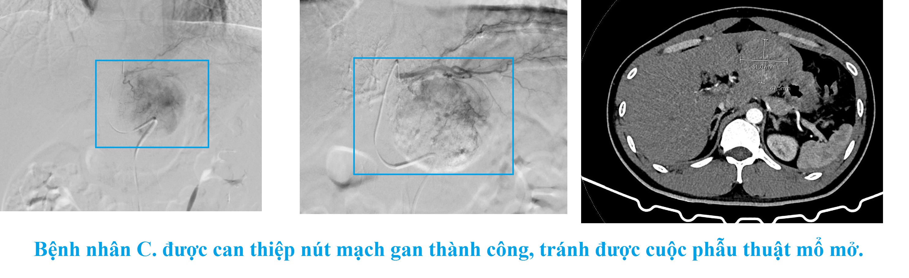 Nhờ phát hiện sớm - chẩn đoán chính xác - xử trí kịp thời, bệnh nhân Nguyễn Văn C. đã được chuyển viện an toàn. Bệnh nhân C được thực hiện can thiệp nút mạch gan tại Bệnh viện Đa khoa tỉnh Quảng Ninh kịp thời, tránh được được cuộc phẫu thuật mổ mở. Hiện tại, sức khỏe ổn định.